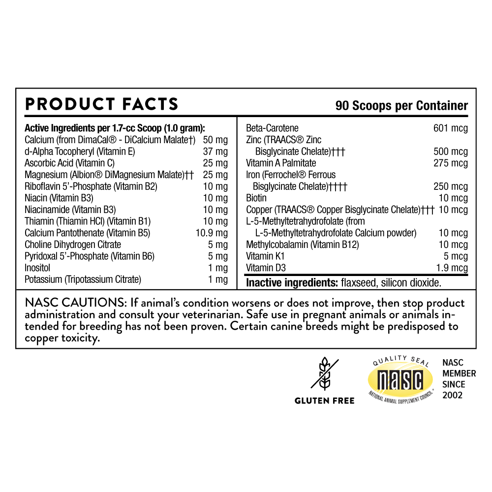 A complete, highly-absorbable multi-vitamin/mineral formula for dogs of all ages